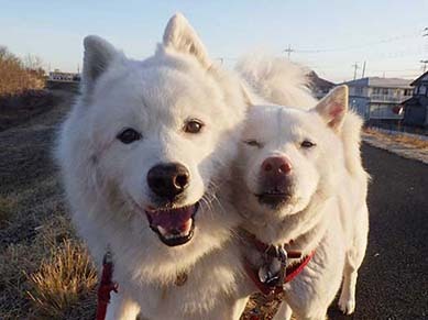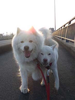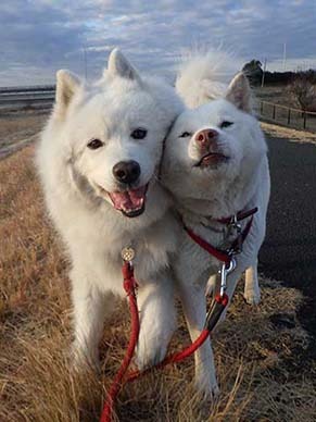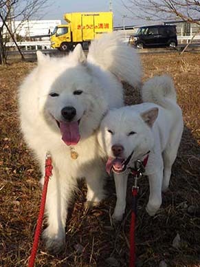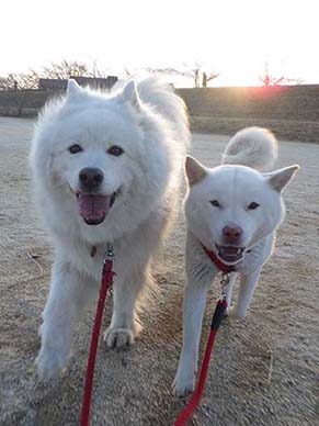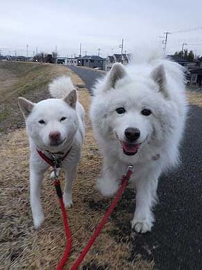 愛犬・イヨ(サモエド♀12才)&ガラシャ(北海道犬♀6才)