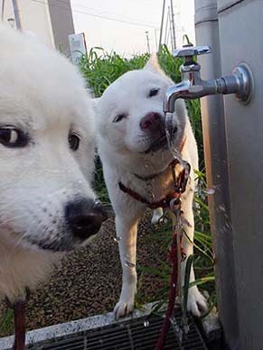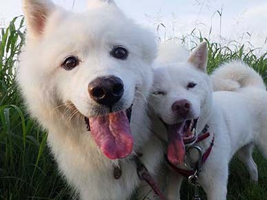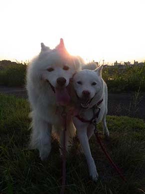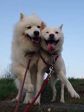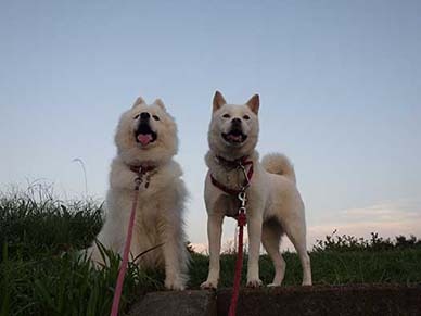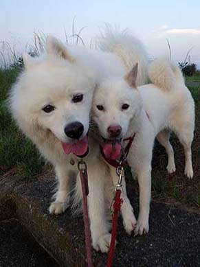 愛犬・イヨ(サモエド♀11才)&ガラシャ(北海道犬♀5才)