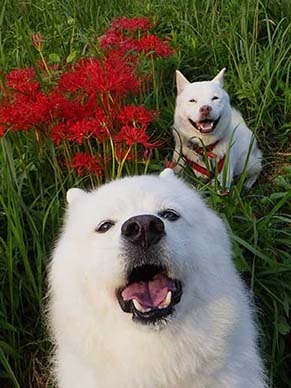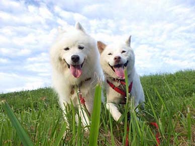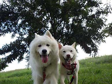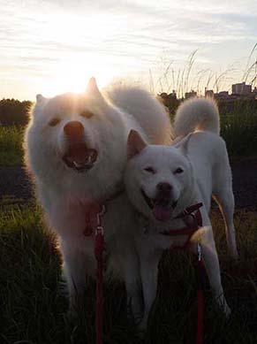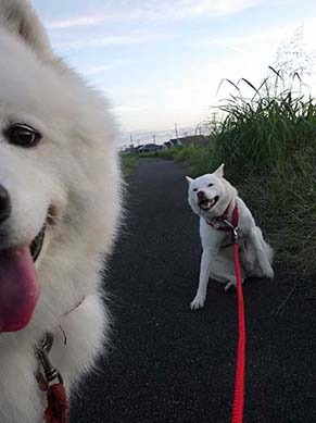 愛犬・イヨ(サモエド♀11才)&ガラシャ(北海道犬♀5才)