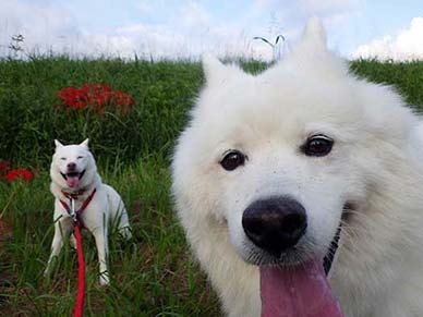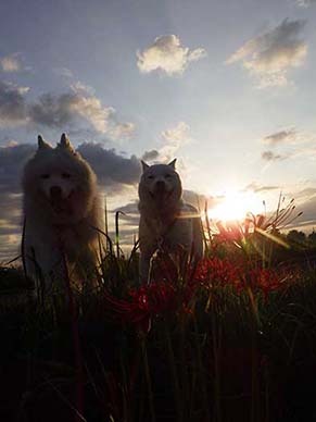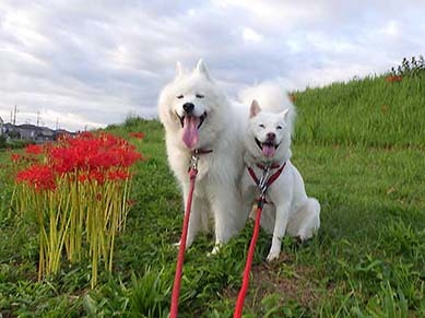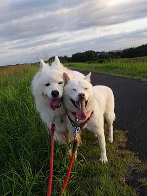 愛犬・イヨ(サモエド♀11才)&ガラシャ(北海道犬♀5才)