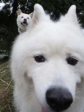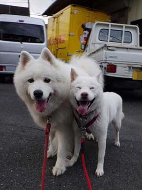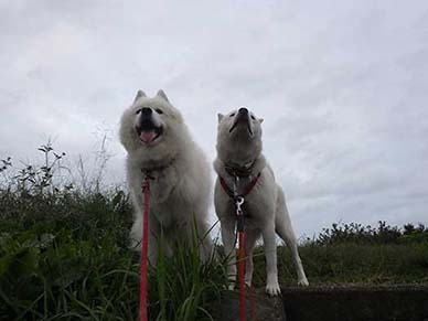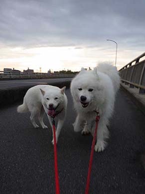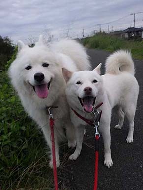 愛犬・イヨ(サモエド♀11才)&ガラシャ(北海道犬♀5才)