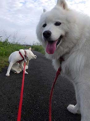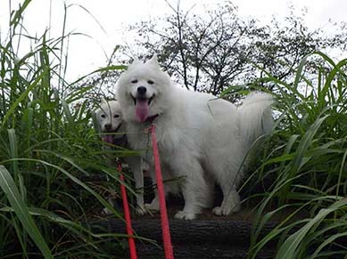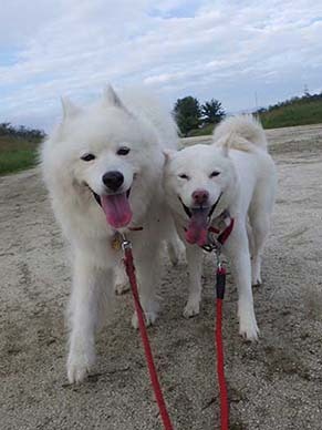 愛犬・イヨ(サモエド♀11才)&ガラシャ(北海道犬♀5才)