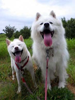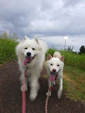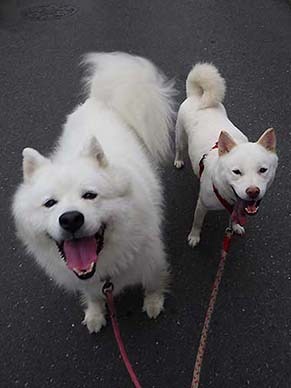 愛犬・イヨ(サモエド♀9才)&ガラシャ(北海道犬♀3才)