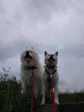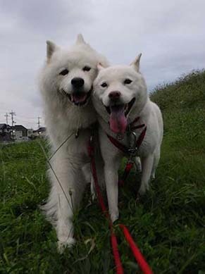 愛犬・イヨ(サモエド♀11才)&ガラシャ(北海道犬♀5才)