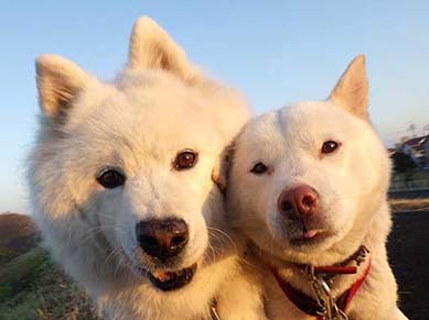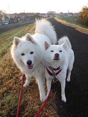 愛犬・イヨ(サモエド♀11才)&ガラシャ(北海道犬♀6才)