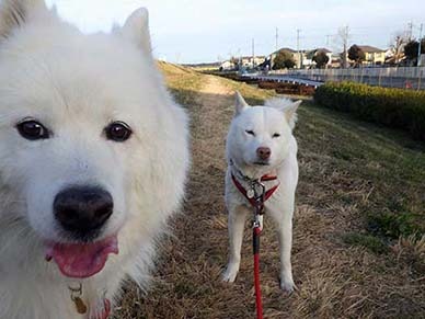 愛犬・イヨ(サモエド♀11才)&ガラシャ(北海道犬♀6才)