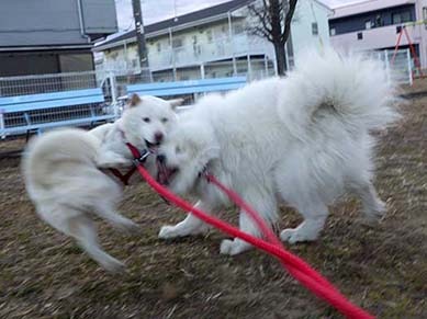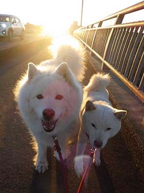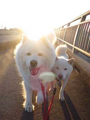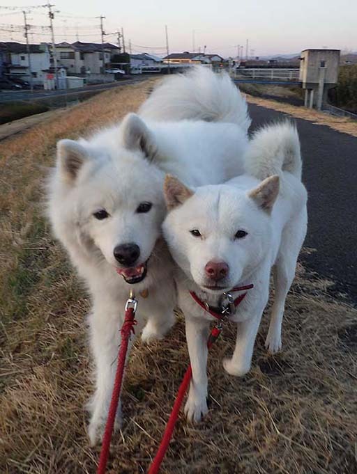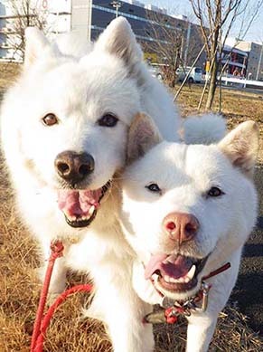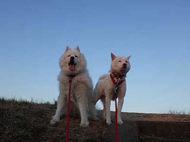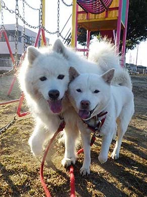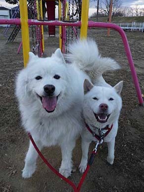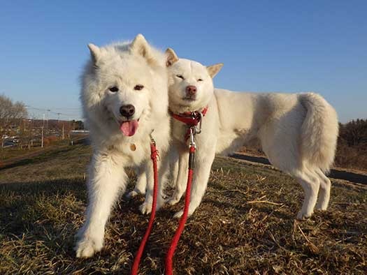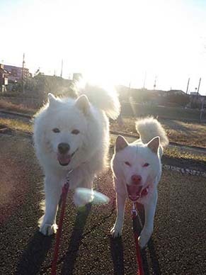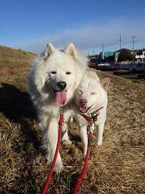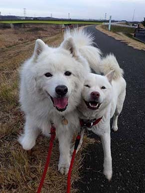 愛犬・イヨ(サモエド♀12才)&ガラシャ(北海道犬♀6才)