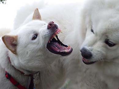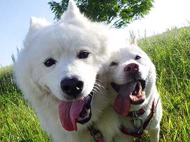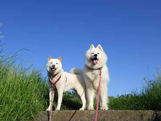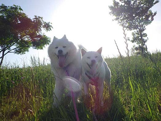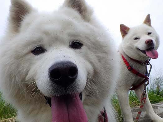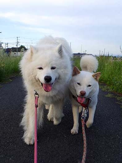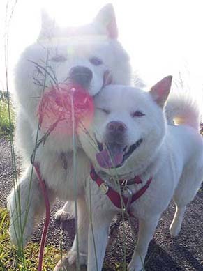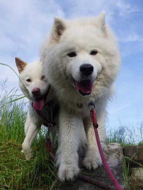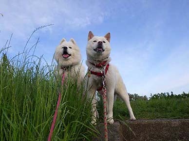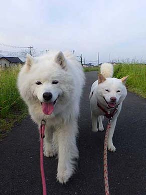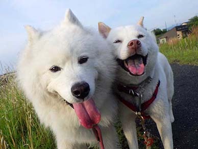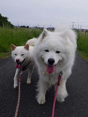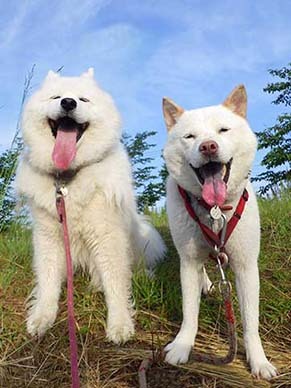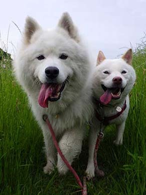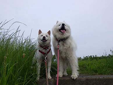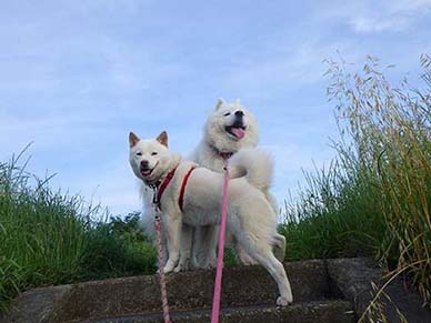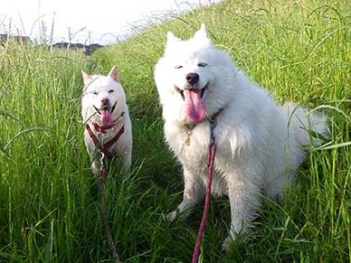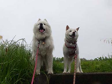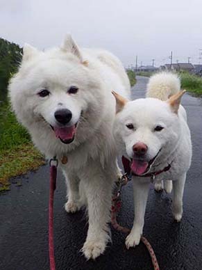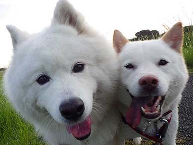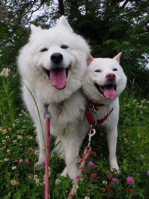 愛犬・イヨ(サモエド♀10才)&ガラシャ(北海道犬♀4才)